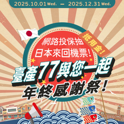 活動期間內,網路本人投保旅遊綜合保險保費達1,000元(含)以上並輸入航班資料,有機會獲得LINE POINTS 50點(共1800名)。