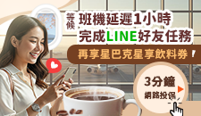活動期間內,本人網路投保旅遊綜合保險及保單生效前登錄班機資訊,即可參與本活動。 當在台灣國際機場等候之原登錄班機起飛延遲1小時(含)以上,並於14天內完成綁定臺灣產物保險官方LINE帳號及輸入指定文字「我要星巴克」, 則臺灣產物保險招待星巴克星享飲料券乙份。