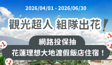 投保以下任一方案並完成付款者,即可抽花蓮理想大地渡假飯店住宿券、花蓮遠雄海洋公園雙人票、花蓮交通補助優惠券。 √ 汽/機車強制險+任意險(強制險+任意險需同時投保在同一張保單內) √ 旅綜險保費達1000元(含)以上 √ 居家保險 √ 租事大吉